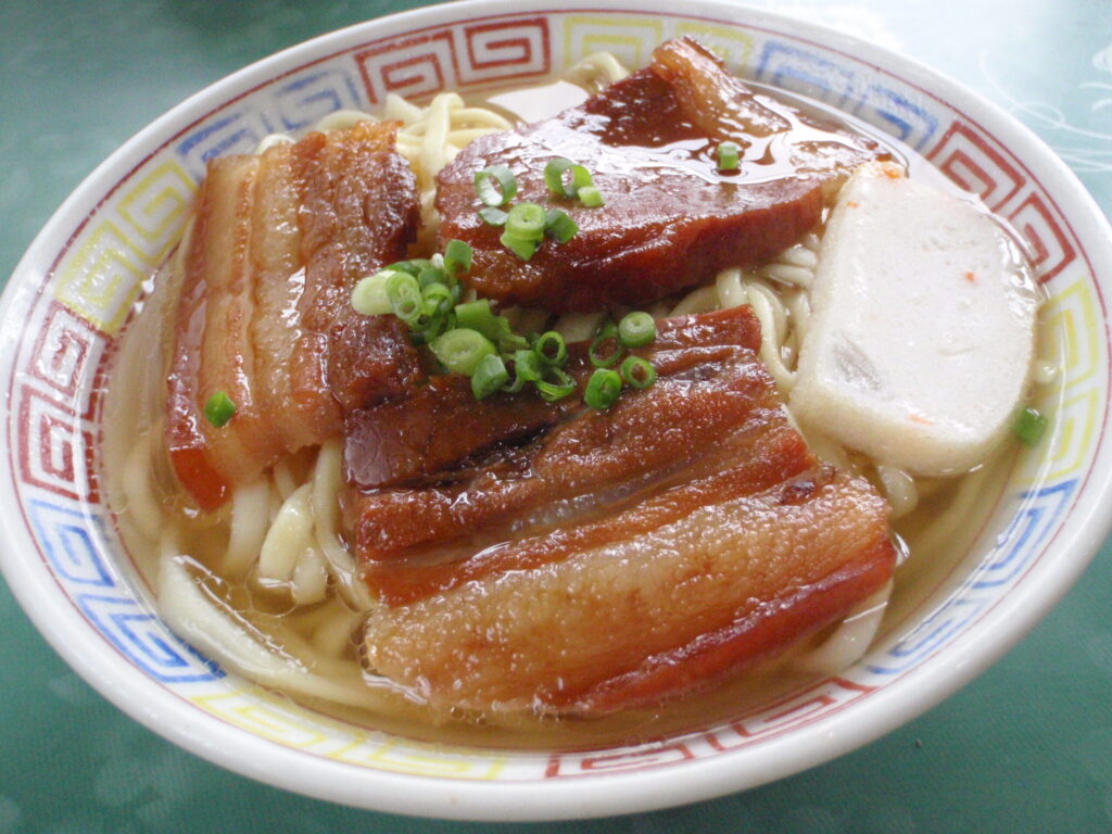- 三枚肉そば:とろとろの三枚肉がのったスタンダードな一杯